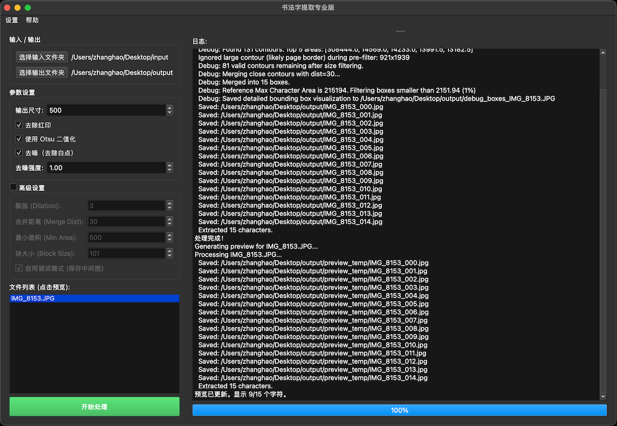 ✅ 一键批量提取:拖入文件夹,自动识别并提取所有书法字